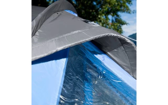 Kuppelzelt mit innenliegendem Gestänge. Drei Dauerbelüftungen. Zwei Fenster im Eingangsbereich. Praktische Organizer und Moskito-Tür an der Schlafkabine. Die Sitzhöhe beträgt 130 cm. In vier Größen erhältlich.
