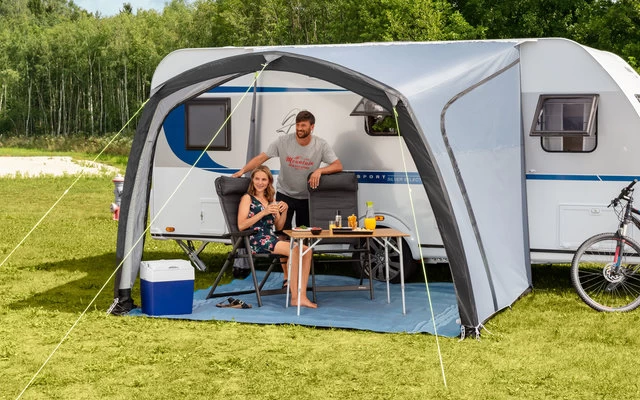 Dieses aufblasbare Sonnendach, macht das Aufbauen zu einer der einfachsten Angelegenheiten, denn durch das Aufblasen des Luftschlauches steht das Dach innerhalb von wenigen Minuten. Es bietet einen großen, schattigen Bereich zum Entspannen und enthält zwei Seitenteile für mehr Privatsphäre und Schutz vor Sonne oder Seitenwind. Die Seitenteile lassen bei Bedarf an beiden Seiten ganz einfach platzsparend nach hinten wegrollen.
