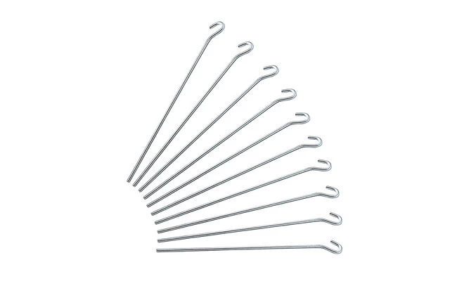 Mit offener Öse und stumpfer Spitze für harte Böden. Galvanisch verzinkter Stahldraht.