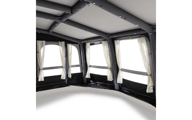 Zeitlos schönes Design und kombiniert mit modernster Luftrahmen-Vorzelttechnologie: Mit dem Ace AIR Pro ziehen Sie auf dem Stellplatz garantiert neidische Blicke auf sich. Schnell und einfach aufzubauen dank Luftgestänge. Raumhohe Fenster und Dachfenster für eine phantastische Aussicht in die Umgebung.