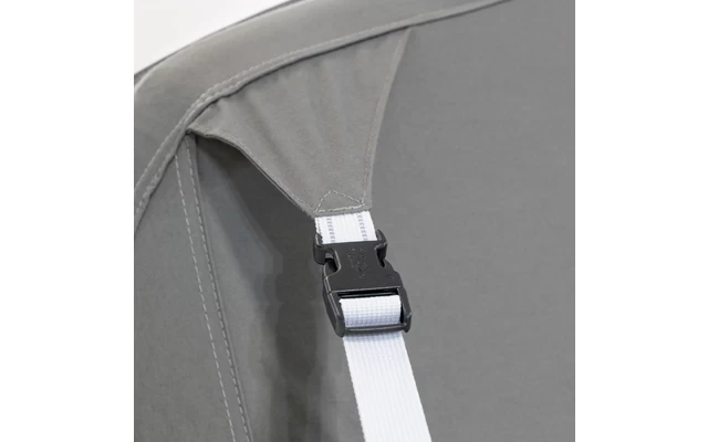 - Quickpitch – Abspannsystem: Aufbau in Sekundenschnelle. Ziehen Sie den unteren Gurt straff und stellen Sie den Verschluss so ein, dass Spannung entsteht
