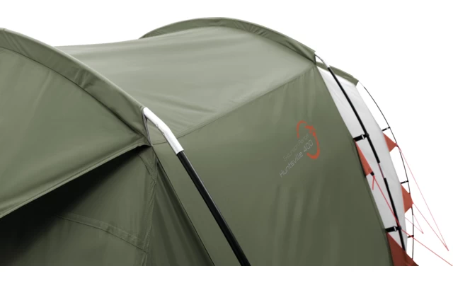 Das Huntsville 400 bietet in seinem geräumigen Innenzelt mit Doppeltür und Trennvorhang Platz für vier Personen. Die Tunnelkonstruktion kommt in raffinierten Farbkombinationen und ist mit vorgebogenen Stangen ausgestattet, die für genügend Kopffreiheit sorgen. Zudem verfügt das Zelt über einen geräumigen Wohnbereich mit großen Fenstern und Türen, die mit Insektenschutzgittern versehen sind, die große Lüftungsöffnung an der Rückseite und die Lüftungsöffnungen vorn sorgen gemeinsam mit den Innentüren aus Netzstoff für eine hervorragende Luftzirkulation. Der aufrollbare, wannenförmige Zeltboden, der die gesamte Innenfläche bedeckt, lässt sich mühelos abnehmen und reinigen.