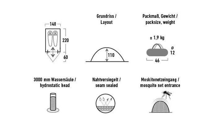 High Peak Kingfisher 2 Leichtgewichtiges Kuppelzelt 220 X 140 Cm